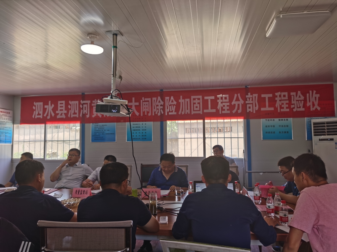 2020年6月29日,泗水縣水利工程建設(shè)管理處主持召開了泗水縣泗河黃陰集大閘除險加固工程施工1標分部工程驗收會議。驗收工作組通過聽取施工單位工程建設(shè)和單元工程質(zhì)量評定情況的匯報,檢查相關(guān)工程資料,同意通過上游聯(lián)結(jié)段、地基防滲及排水、閘室段和下游聯(lián)結(jié)段4個分部工程的驗收。驗收工作組一致給予“山東水總不愧是水利鋼軍”的好評!