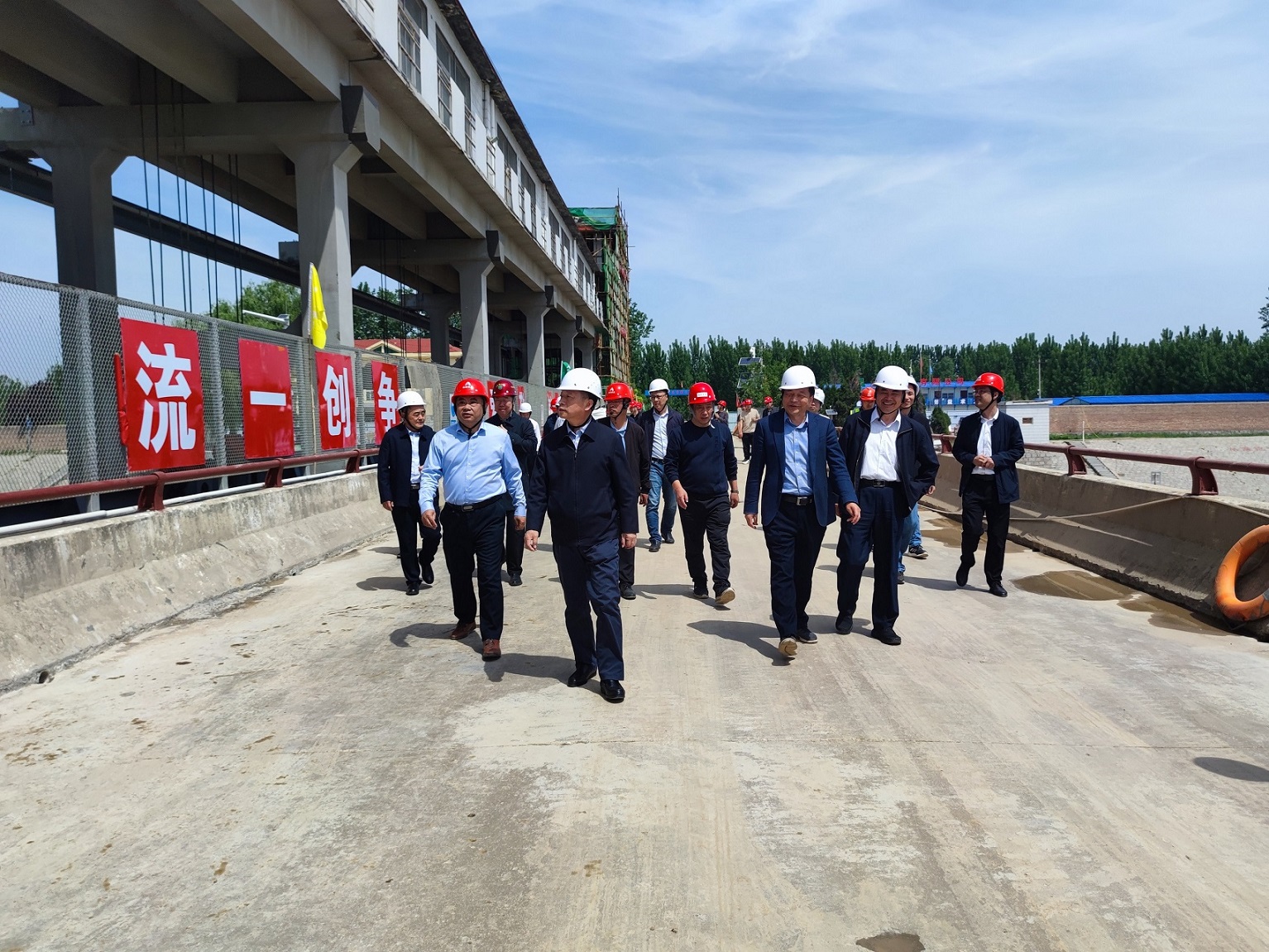5月8日,山東省水利廳一級(jí)巡視員王祖利一行到小清河水牛韓節(jié)制閘除險(xiǎn)加固工程進(jìn)行調(diào)研督導(dǎo),公司黨委書記、董事長(zhǎng)劉深遠(yuǎn)陪同調(diào)研。第七分公司總經(jīng)理韓棟、副總經(jīng)理李景波等參加調(diào)研。