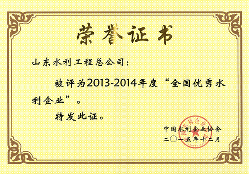 公司榮獲2013-2014年度“全國優(yōu)秀水利企業(yè)”
