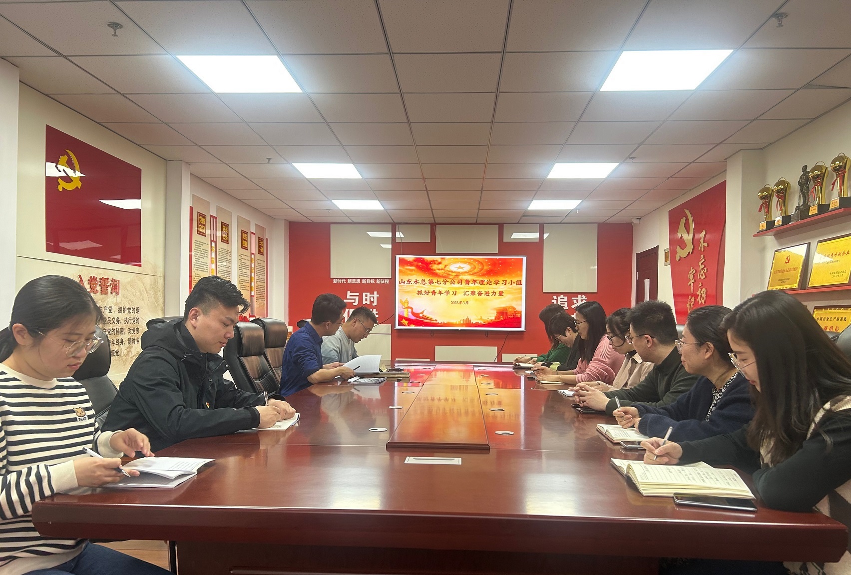 韓棟領(lǐng)學(xué)習(xí)近平總書記在中央黨校建校90周年慶祝大會(huì)暨2023年春季學(xué)期開學(xué)典禮上發(fā)表的重要講話和黨的二十大報(bào)告對(duì)青年工作的要求。隨后,青年職工就學(xué)習(xí)內(nèi)容進(jìn)行交流研討。